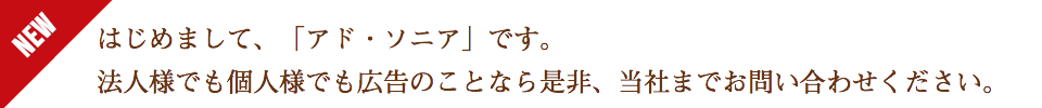 セールスプロモーション・デザイン・印刷・看板・企画・Web制作など、広告の事なら、「株式会社アド・ソニア」へ。